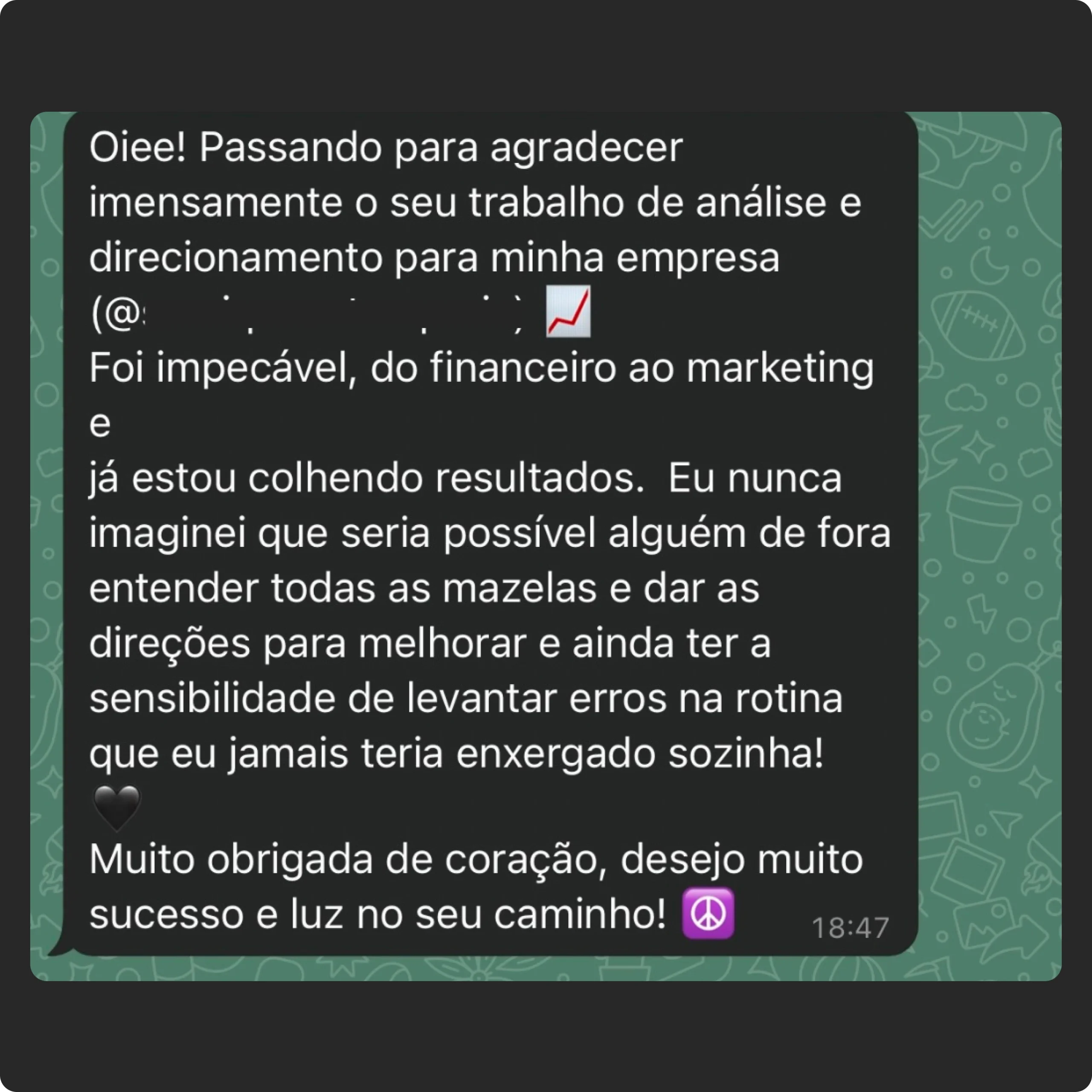 Diagnóstico completo do seu perfil e da sua marca, com análise estratégica e definição das primeiras ações.